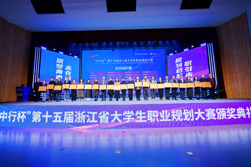12月25-27日,由浙江省教育厅主办,浙江省教育发展中心、浙江经济职业技术学院联合承办的“中行杯”第十五届浙江省大学生职业规划大赛决赛在浙江经济职业技术学院圆满落下帷幕。经过省内各高校的选拔推荐,共有105所高校869名选手参加省赛复赛,经专家组评议,共有214名选手入围省级决赛。此次大赛汇聚了众多优秀学子,经过现场决赛的激烈角逐,我校荣获大赛金奖1项、银奖1项,2位教师获评大赛优秀指导教师,学校获大赛优秀组织奖。
