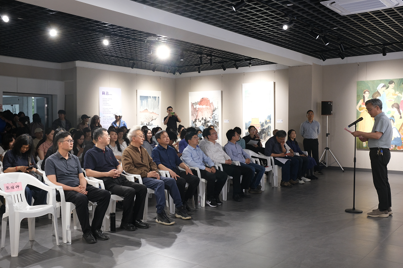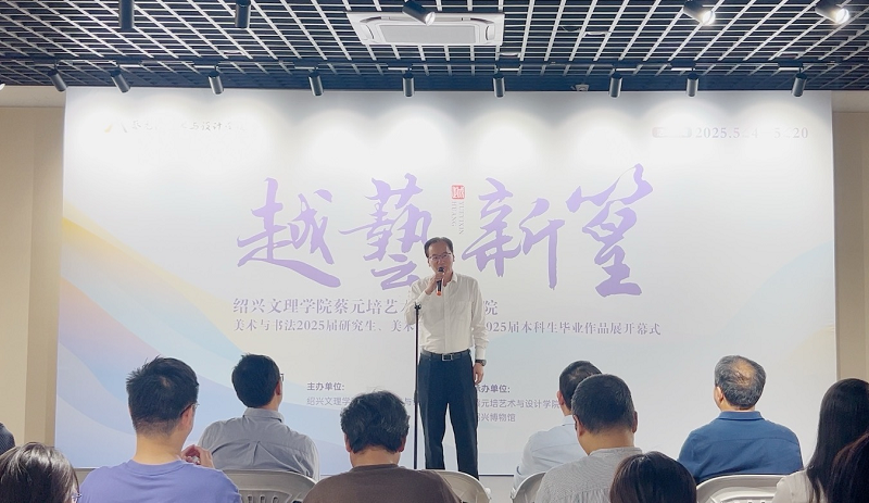 蔡元培艺术与设计学院副院长张继钟介绍了展览情况并作为毕业班班主任代表发言。本次展览共展出15位研究生和35位本科生的110余件作品,包括国画、油画、版画、水彩、综合绘画等,研究生以及本科生作品分别在在恂如美术馆、绍兴博物馆展出。