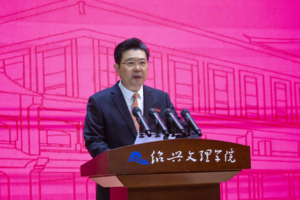 温暖代表市委、市人大、市政府、市政协向韩启德院士和袁明教授夫妇表示崇高敬意,向获奖师生表示祝贺。他说,当前的绍兴,正在深入学习贯彻习近平总书记考察浙江重要讲话和考察绍兴重要指示精神,奋力谱写新时代胆剑篇。希望同学们明修德之道,扬求真之风,以奋斗之姿跑出靓丽成绩;希望各位老师潜心传道授业,躬身科研战场,努力培育输送更多全面发展的优秀人才;希望学校持续提升办学质量,在绍兴打造教育科技人才“三位一体”融合高质量发展的标志性成果中挑好“千钧担”、当好“领头羊”。