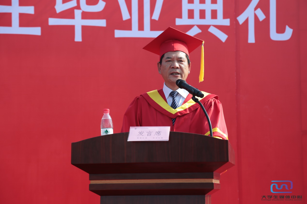 元培学院副院长叶访春代表全院师生员工向圆满完成学业的毕业生同学们表示热烈的祝贺,他希望全体2018届毕业生把母校装进脑海,装进心扉,将母校作为永远的家和港湾。并衷心祝愿2018届毕业生在人生旅途上顺利起航,工作有所作为,让生活更加充实,美好,不断谱写人生平凡、充实而又美丽的新篇章。