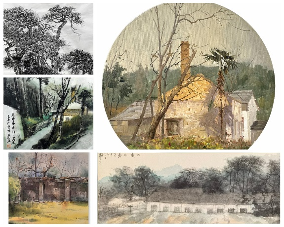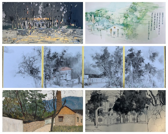 写生期间,会员们深入师专旧址建筑群、宋六陵古松林采风。油画组以厚重笔触捕捉红砖建筑的光影变迁,国画组用水墨渲染松林与远山的空灵意境,创作出兼具传统与现代感的作品。