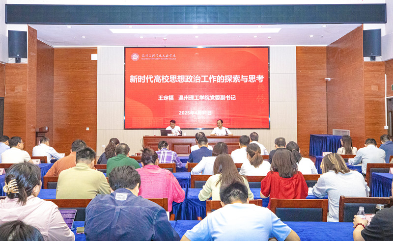 王定福结合自身工作实际,从高校思政工作的特殊性、重要性出发,围绕工作定位彰显新担当、工作体系构建新格局、工作机制释放新魄力、工作保障展现新作为、工作成效开创新局面五个方面,全面深入介绍温州理工学院思政工作亮点特色和办学成效经验,系统阐释新时代思政工作的特点与路径,并深入浅出地讲解思政工作机制运行、形态构成、功能发挥、阵地建设等关键要点。他强调,要准确把握顶层设计与角色定位,坚持立德树人根本任务,坚守为党育人为国育才初心使命,全面提升高校思政工作队伍能力和水平,持续提升师生思政教育获得感、满意度,着力培养担当民族复兴大任的时代新人。