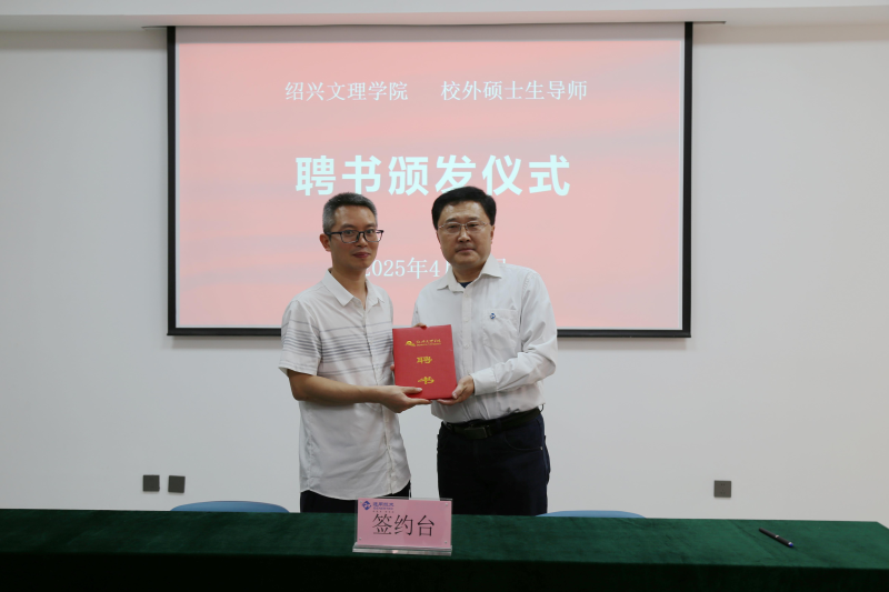 邹专勇为许志强颁发了校外硕士研究生导师聘书。