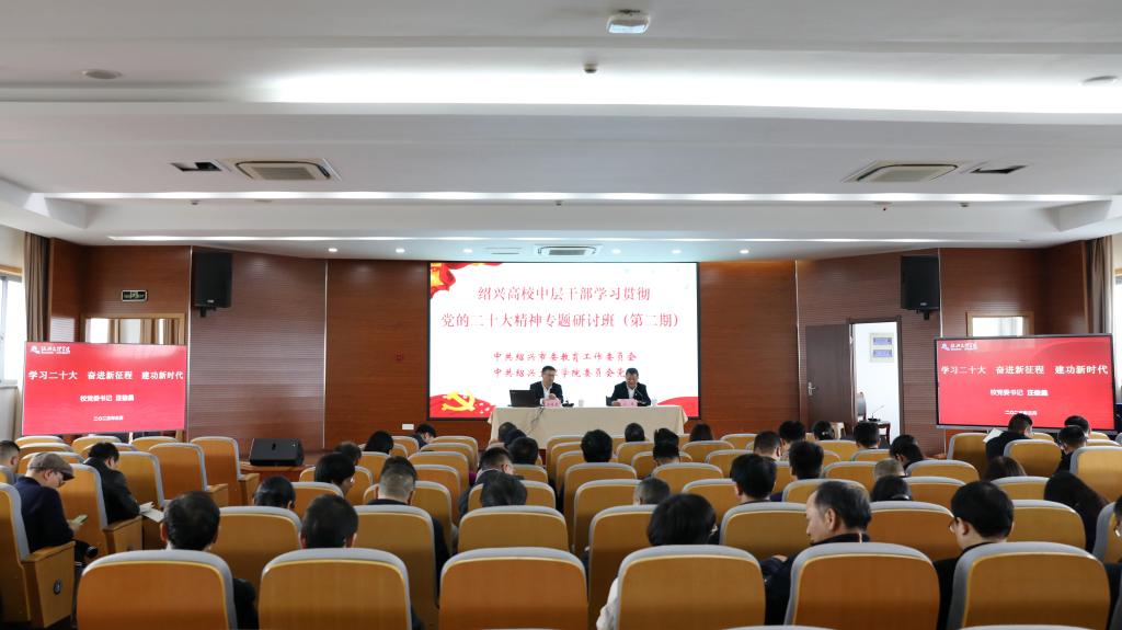 为深入学习贯彻党的二十大精神,切实把高校领导人员的思想、意志和行动统一到会议精神上来,根据上级要求,绍兴市委教育工委和学校党委在市委党校联合举办了“高校中层领导人员学习贯彻党的二十大精神专题研讨班”。本次研讨班分两期举行,采用专题辅导、集中自学、分组研讨、理论测试、大会交流等形式开展教学活动。