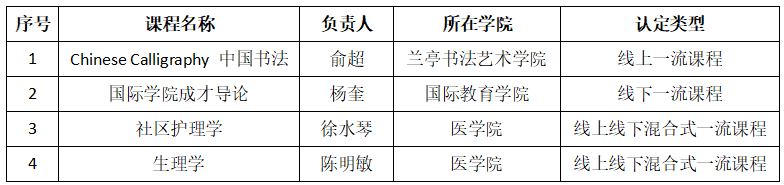 近日,浙江省教育厅公布了第三批省级一流本科国际化课程名单,我校“中国书法”等4门课程获省教育厅认定,包括线上一流课程1门,线下一流课程1门,线上线下混合式一流课程2门。