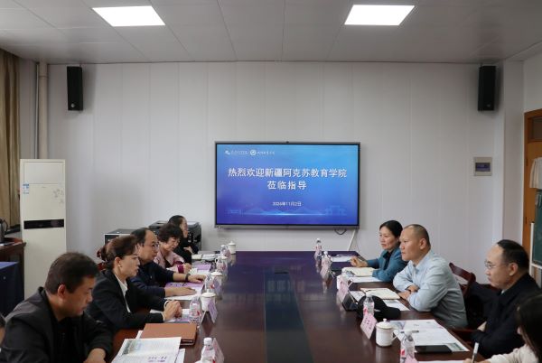 11月2日上午,新疆阿克苏教育学院党委书记、南疆语文教研中心主任郝云一行来教师教育学院交流座谈。教师教育学院党委书记罗润锋,学报执行主编、人文学院语文教育学科主任李子华,教师教育学院副院长刘雄英及相关人员参加座谈会。