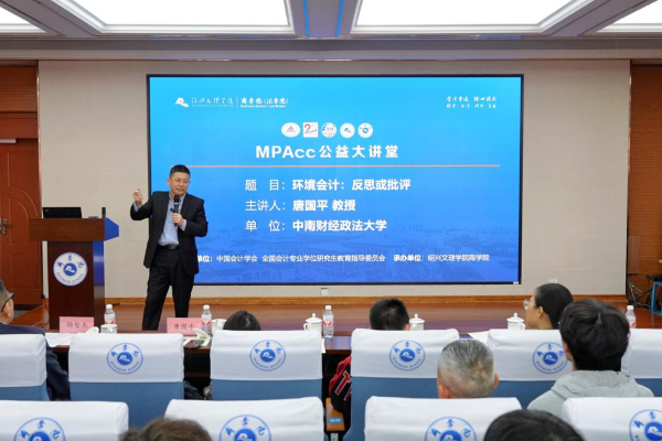 本次MPAcc会计名家公益大讲堂邀请财政部会计名家、全国会计专业学位研究生教育指导委员会委员、财政部首批会计学术领军人才、暨南大学管理学院沈洪涛教授为师生作“贵州茅台的逆袭:ESG评级与信息披露”主题讲座;财政部会计名家、财政部第一届企业会计准则咨询委员会委员、财政部《中华人民共和国会计法》修订研究课题组组长、中南财经政法大学会计学院唐国平教授为师生作“环境会计:反思或批评”主题讲座。