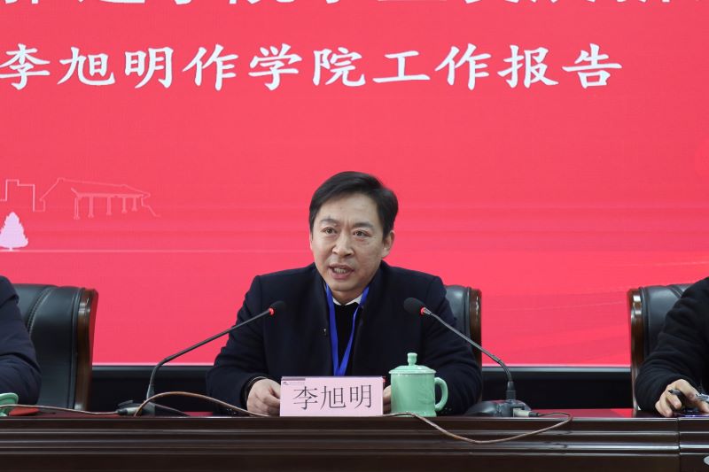 院长李旭明作题为《协力谋发展实干谱新篇——以新作为推进学院事业发展新腾飞》的学院工作报告。