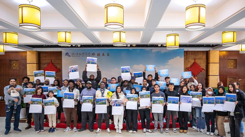 市摄影家协会为外籍师生赠送“把绍兴带回家”为主题的2025年挂历。
