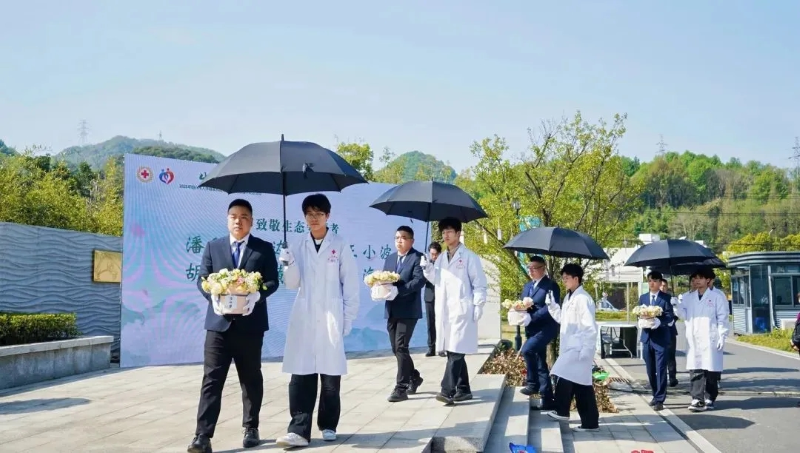 4月2日上午,生命·希望——绍兴市2025年人体器官和遗体(组织)捐献缅怀纪念活动在官山生态陵园“生命礼敬”园举行。医学院为在我院完成“无语良师”使命的6位遗体捐献者举行了集体草坪生态安葬,让这些大爱的平民英雄“荣耀回家”。
