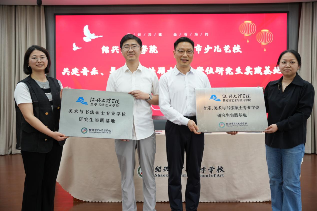 为贯彻落实国家关于深化艺术教育改革的相关要求,创新专业学位研究生培养模式,我校与绍兴市少儿艺校共建“音乐、美术与书法硕士专业学位研究生实践基地”。4月11日,基地授牌仪式暨合作签约活动在绍兴市少儿艺校举行。越城区教体局党委委员、副局长王颖,蔡元培艺术与设计学院院长童师柳,绍兴市少儿艺校校长马士力及师生代表等参加活动。