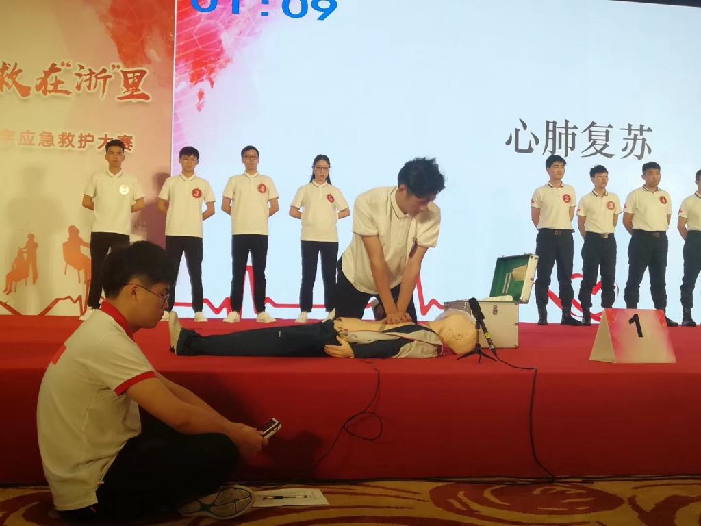 学校举办或组队参加救护技能大赛。先后举办七届应急救护技能大赛,全校各二级学院各选派5人组队参赛,围绕“心肺复苏+AED”“止血、包扎、固定、搬运”四项技能和救护理论考核等三个项目展开角逐,以赛促学强本领,以学促用展风采。学校先后四次组队参加浙江省红十字应急救护技能大赛,荣获团体综合一等奖1次、三等奖2次、优胜奖1次,荣获个人项目一等奖1人、二等奖5人、三等奖9人。先后2次组队参加绍兴市红十字现场救护技能竞赛均获团体第一名。
